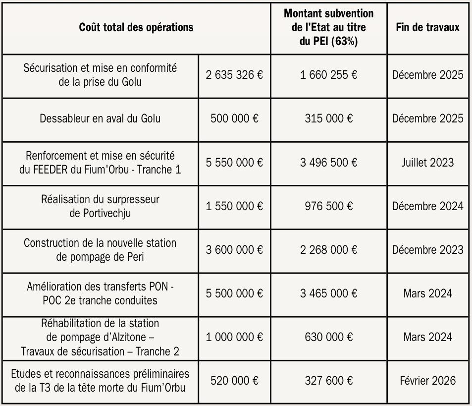 Dans le cadre du PEI, l’État et la CDC ont réalisé les 8 opérations suivantes, afin de contribuer à une meilleure gestion de l’eau brute :